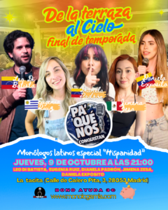 Nuestros monólogos se adaptan al ambiente veraniego: frescura, espontaneidad y humor para disfrutar bajo el sol o bajo las estrellas. Ideal para terrazas que buscan ofrecer algo más que un simple lugar para disfrutar a la fresca.Interacción y Buen Rollo: