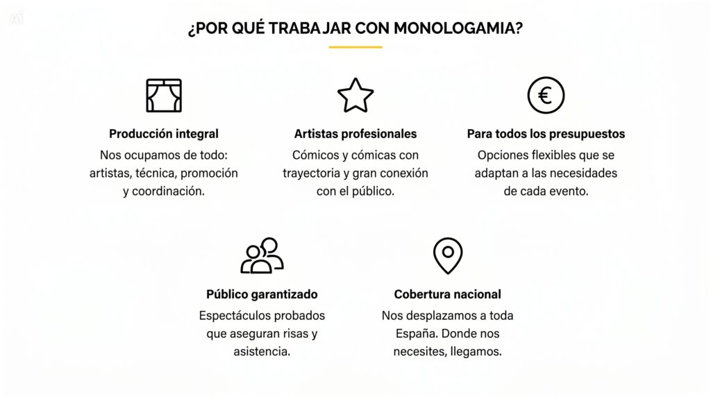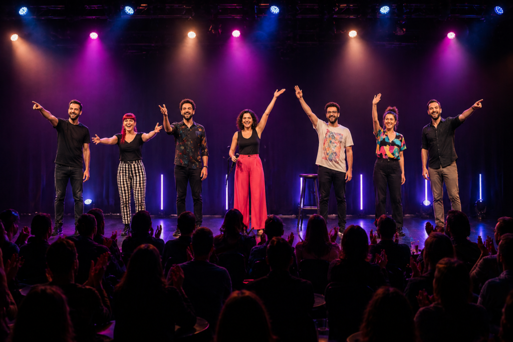 Creamos galas y noches de comedia con varios artistas, presentador y formato adaptado a tu evento.